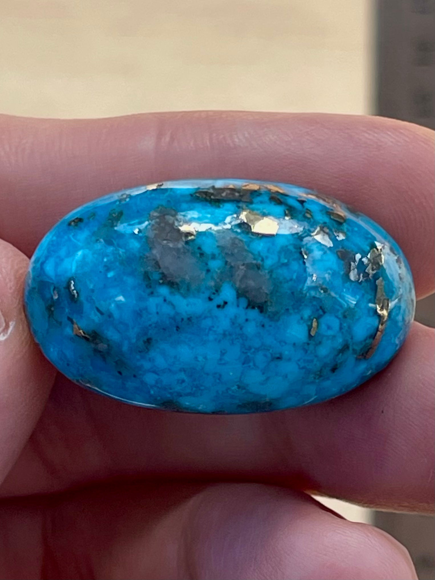✨ A Lovely Iranian Turquoise Cabochon – With Golden Pyrite Kerman Mine - Iran ✨ (#K54)